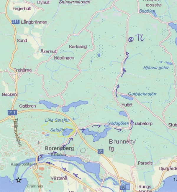 | Start-mål procedur: | På samma sätt som vid "Sunes bana" ska man registrera sig vid "målet" och sedan startstämpla vid startögonblicket. |